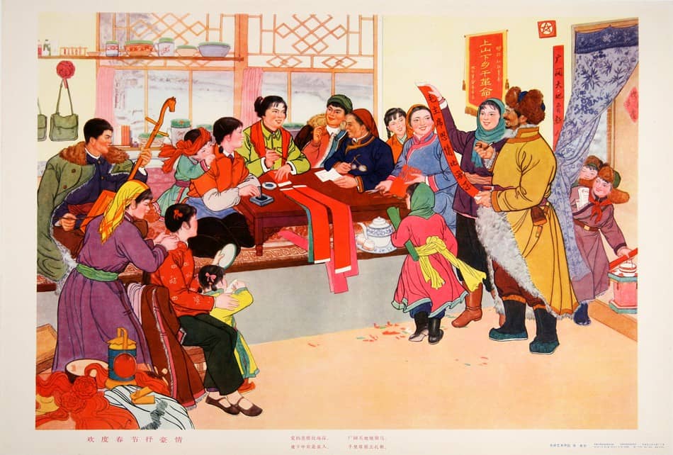 The poster "Celebrating Spring Festival with Passionate Spirit" captures a scene in the remote and frigid borderlands, where youth who have left their hometowns and settled in rural areas are welcoming another joyful Spring Festival.