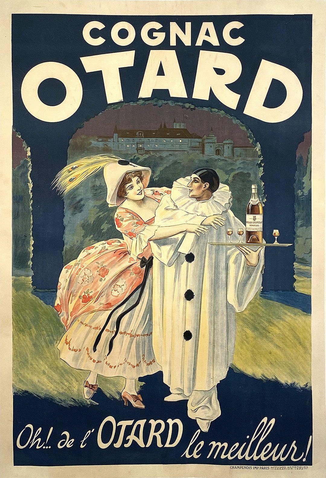 Pierrot seems to finally capture the love and attention of Columbine, with the help of delicious Cognac Otard, in this classic liquor poster from 1922. The moonlight illuminates this night time scene, highlighting not just the charming couple but also the impressive Chateau de Cognac where Cognac Otard is produced.