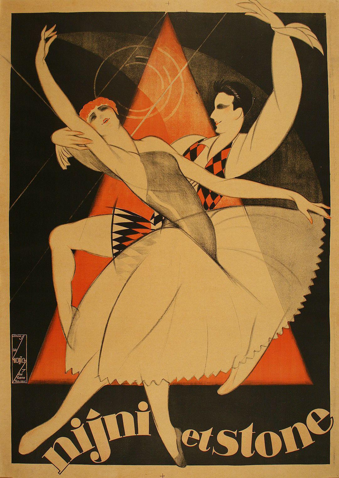 Designed in the 1930's by Niccolitch this poster shows the dance duo of Nijni and Stone. Like many other posters of the era, there is a strong influence of the Constructivist Movement. The poster was intended for use to promote the appearances of this duo and a banner for each date and location would likely be added by the local venue.