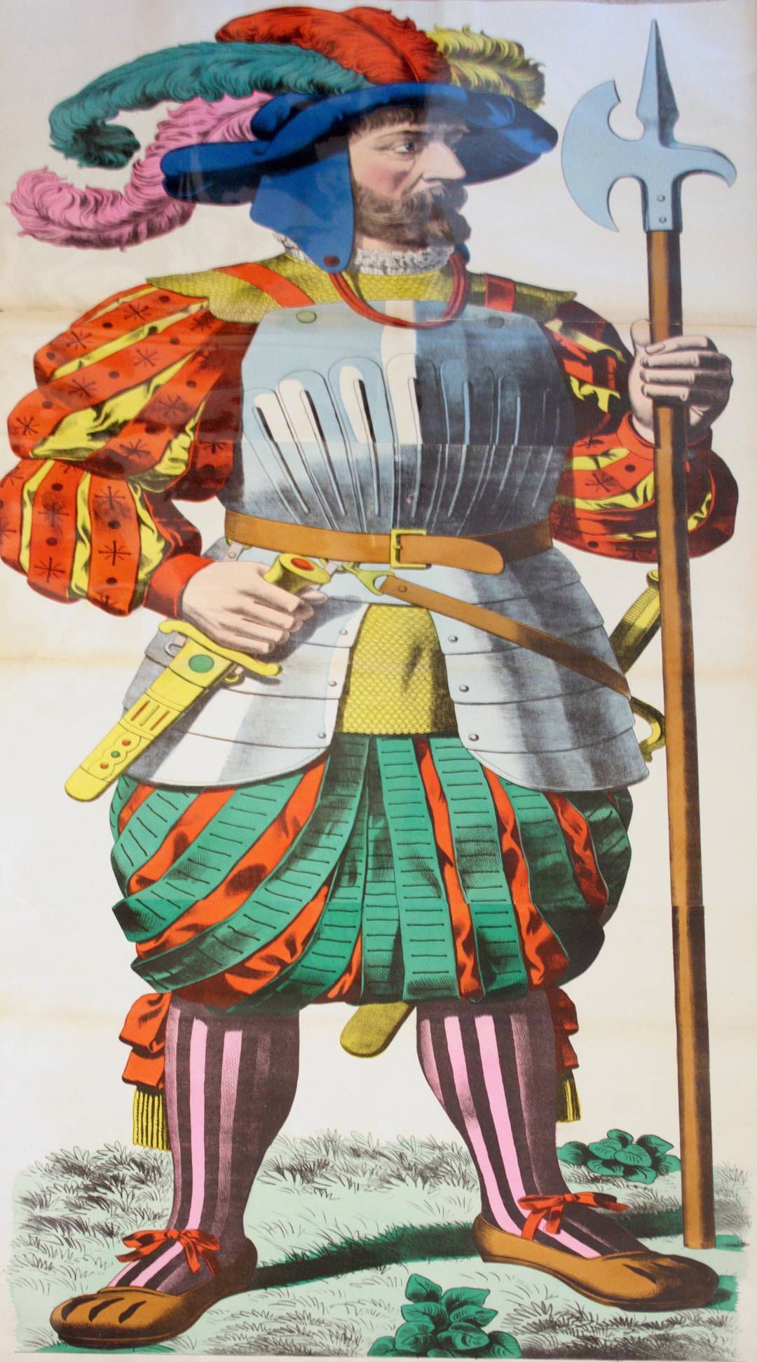 A royal guard stands vigilant in his feathered cap.