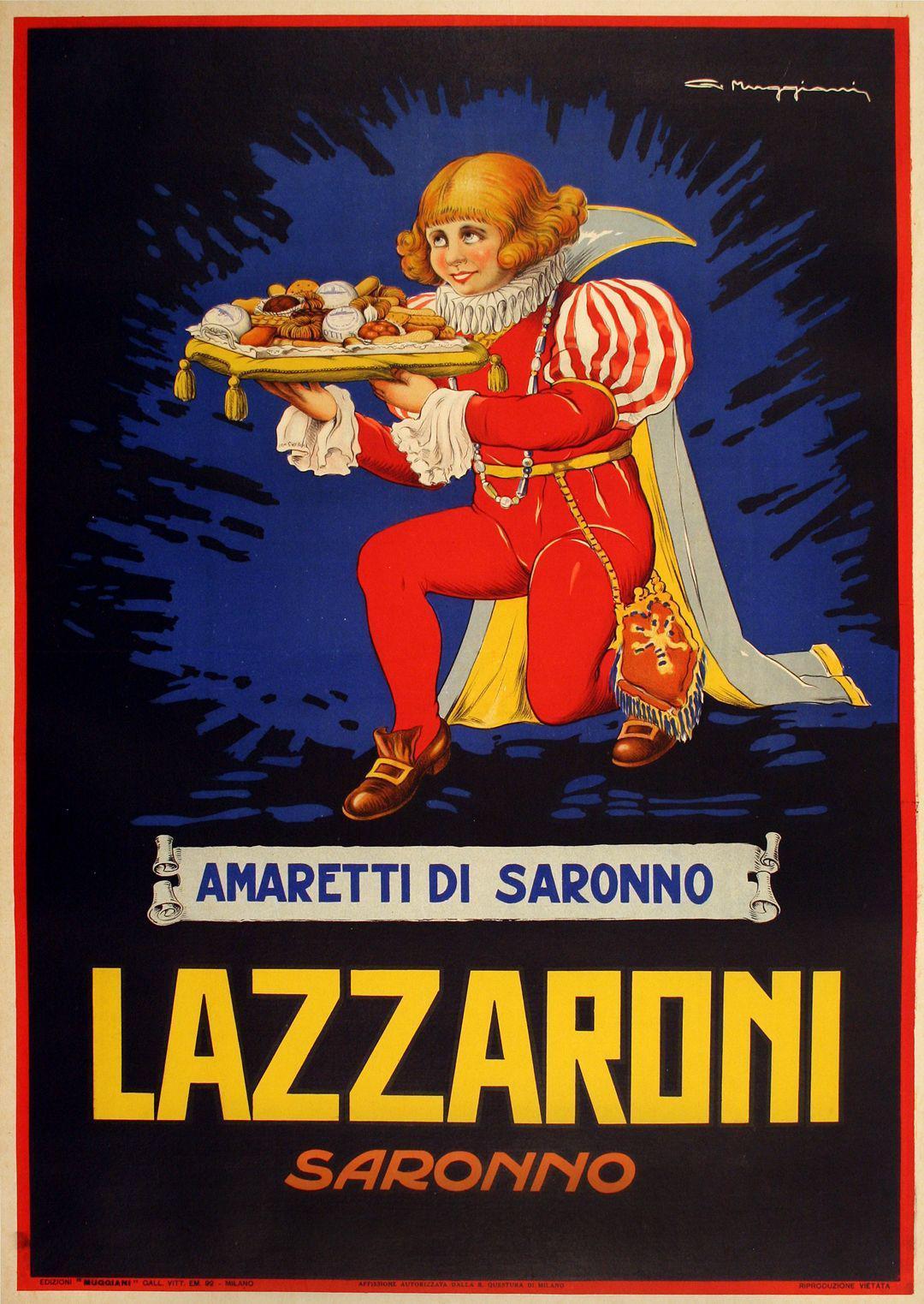Lazzaroni is the name of the brand which distributes and makes several biscuits and bakery products manufactured by the company D. Lazzaroni & C. Spa. Amaretti Di Saronno, which this poster is directly advertising refer to the Amaretto (almond flavored macaron) traditional to Saronno, a commune of Lombardy in Italy (Wikipedia).