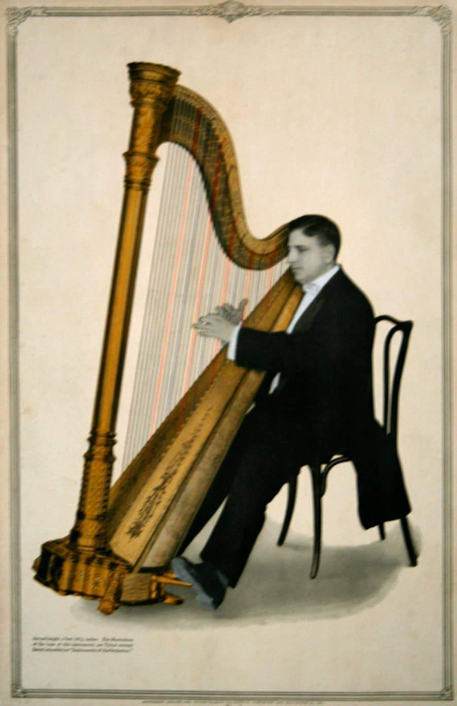 Radio Corporation of America (RCA) Records is the second-oldest recording company in US history. In 1929, the company purchased the Victor Talking Machine Company, at which time the company became RCA-Victor. This vintage poster is part of a series produced by RCA-Victor that featured various orchestral instruments; this one presents a harp.