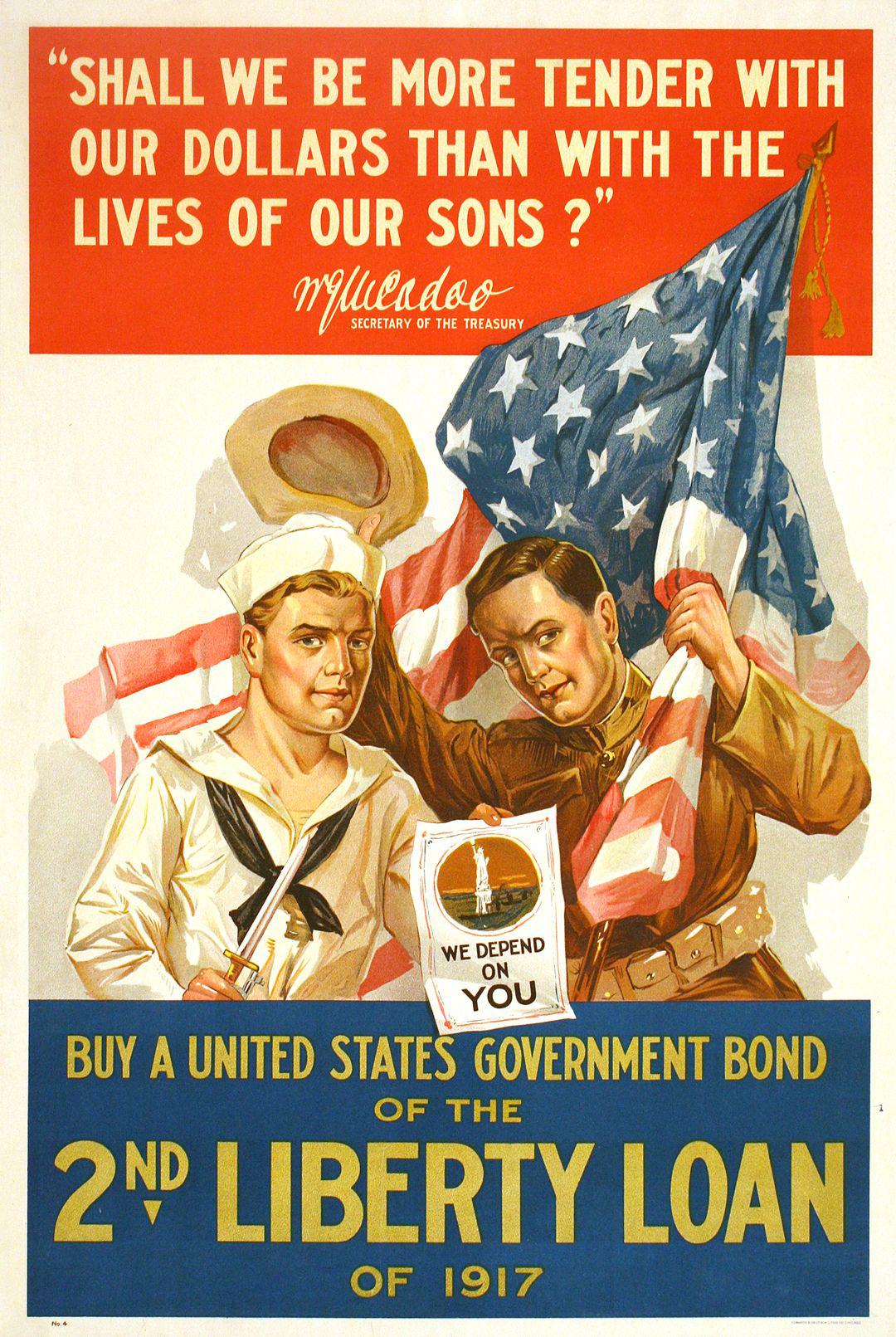 One of the very important functions of the people on the home front during World War I was to financially support the war effort and the soldiers fighting overseas. In this image we see the quotation from the Secretary of the Treasury suggesting that we be more conservation minded in our spending so as to have more money available to support the Army and Navy soldiers depicted. The artist of this poster was William Gibbs and unfortunately not much is known about him.