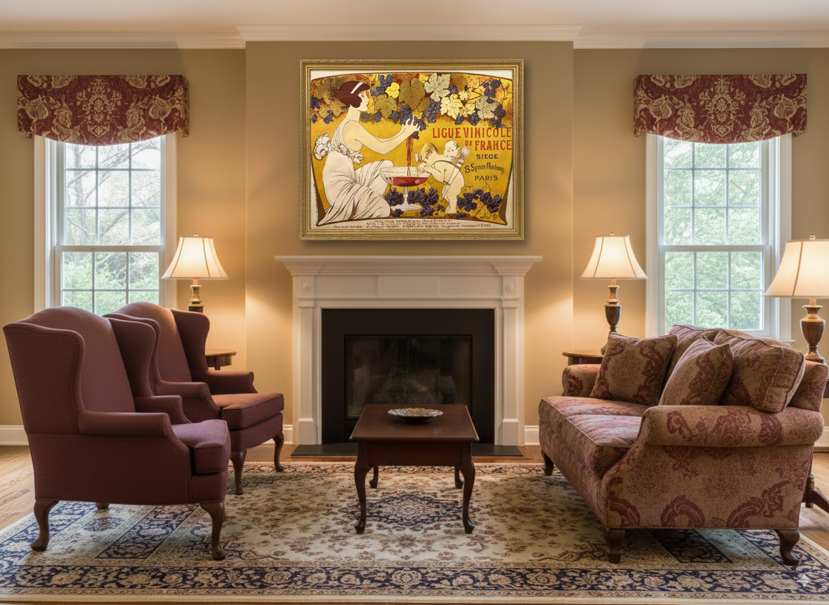 This graceful poster, created in 1901 by Manuel Orazi (1860–1934), was commissioned by the Ligue Vinicole de France to promote the importance of viticulture and the protection of French wine producers. Orazi, a celebrated Italian-born illustrator and poster artist who settled in Paris, was renowned for his elegant Art Nouveau style, characterized by flowing lines, decorative detail, and allegorical figures. Founded at the end of the 19th century, the Ligue Vinicole de France was created to defend the interests of French winemakers, preserve traditional production, and resist the influx of foreign competition that threatened the domestic market. This poster served not only as advertising but also as a cultural statement, urging the public to value and protect one of France’s most important national industries. Orazi’s work in posters and book illustration is widely admired for its refinement and theatrical flair, often blending allegory with modern advertising needs. His designs epitomized the opulent Art Nouveau movement in France, placing him alongside contemporaries such as Mucha and Privat Livemont. This is an Original Vintage Poster, it is not a reproduction. This poster is conservation mounted, linen backed and in excellent condition. We guarantee the authenticity of all our posters.