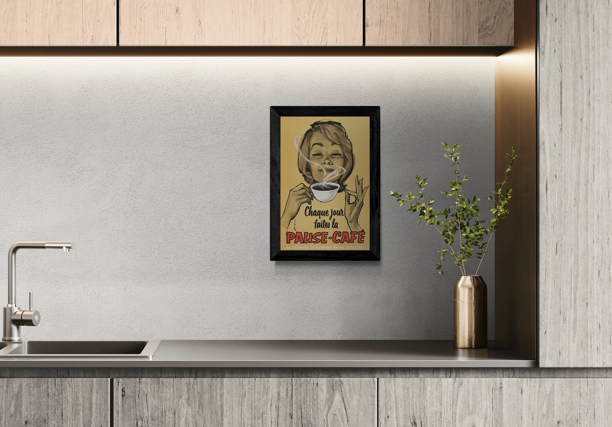 Ah, is there anything more rewarding as the simple pleasure of a coffee break? This charming 1950s poster perfectly captures that lovely quiet moment in the middle of the day. This poster was most likely created to promote cafes and bars that served coffee, rather than a specific brand of coffee. It is the perfect piece for a kitchen or office!Pierre Couronne (1928 - 2013) created many charming advertising posters in 1950s and 1960s France for brands from Peugeot to Noveltex. He is much more widely known for his prolific career as a children's book author and illustrator. The Coralie series is just one of his many beloved French series.This is an Original Vintage Poster; it is not a reproduction. This poster is conservation mounted, linen backed, and in excellent condition.We guarantee the authenticity of all of our posters.